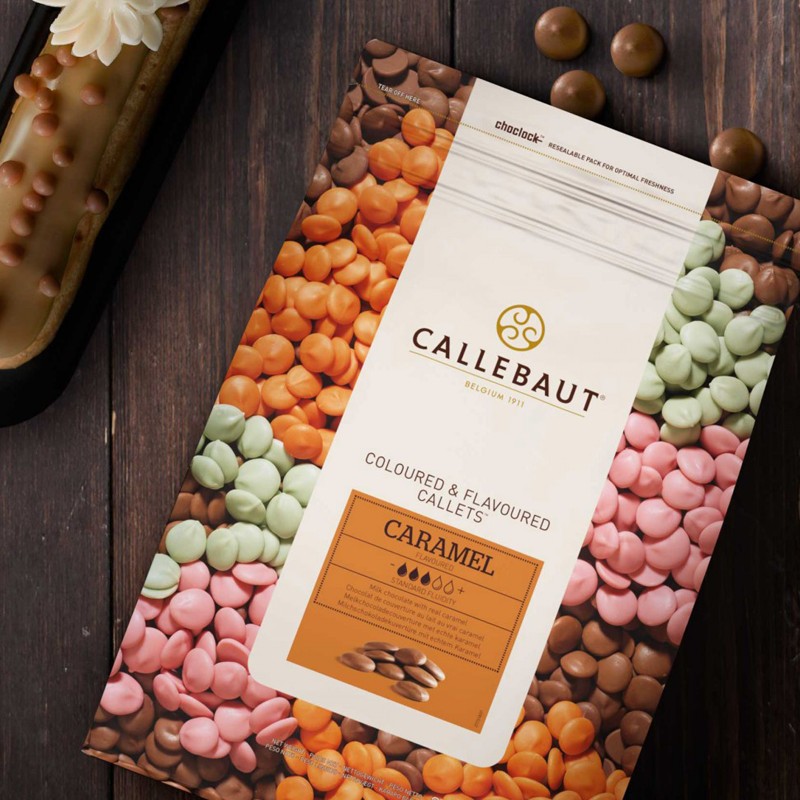 Les Callets™ aromatisés offrent le meilleur des deux mondes: vous profitez de la saveur du chocolat agrémentée d’une touche de caramel. Ces callets au parfum raffiné sont idéaux pour ajouter une nouvelle saveur à vos mousses, crèmes, bavarois... Ces callets de qualité (Callebaut) peuvent être utilisés très facilement pour toutes vos pâtisseries. En effet, avec ces callets, vous ne devez plus concasser votre chocolat avant de le faire fondre. De plus, cette structure en callet permet au chocolat de fondre rapidement et doucement sans brûler.