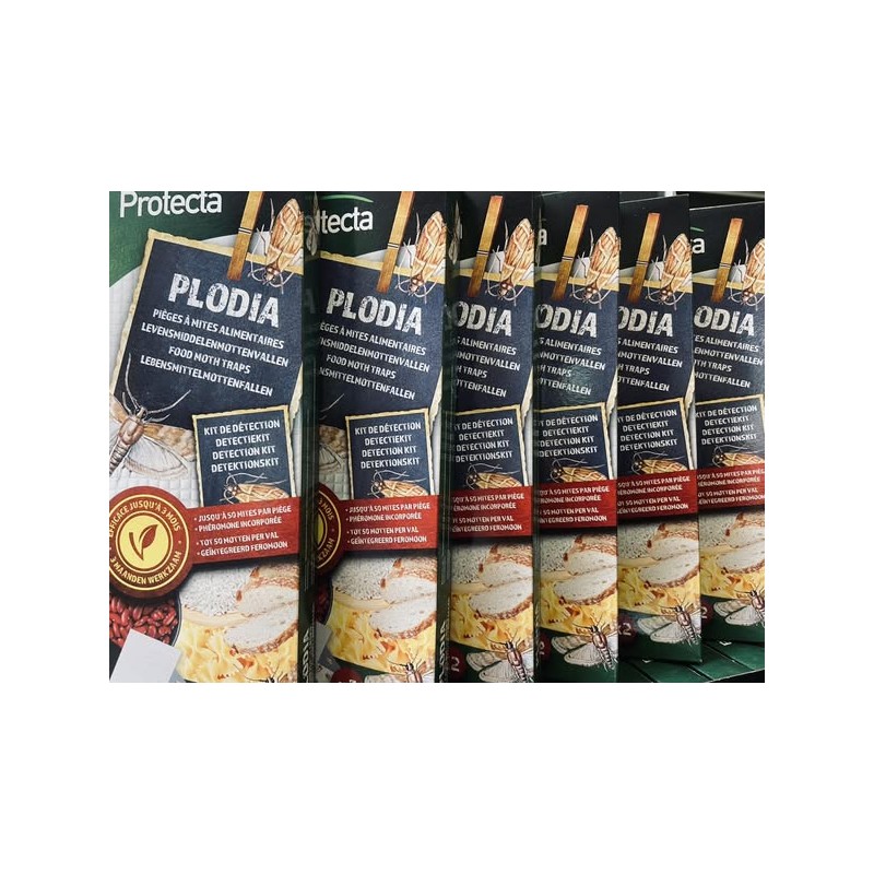 Les pièges à phéromones Plodia sont des dispositifs non toxiques utilisés pour détecter et contrôler les mites alimentaires (Plodia interpunctella, Ephestia). Ils attirent les mâles via une odeur sexuelle sur une surface engluée, stoppant la reproduction. Placez-les dans les placards de cuisine pour une efficacité de 6 à 8 semaines.